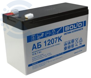 Аккумулятор свинцово-кислотный; 12В / 7 Ач; выводы Ш-6.3; срок службы 15 лет; 151х65х100 мм, 2.54 кг