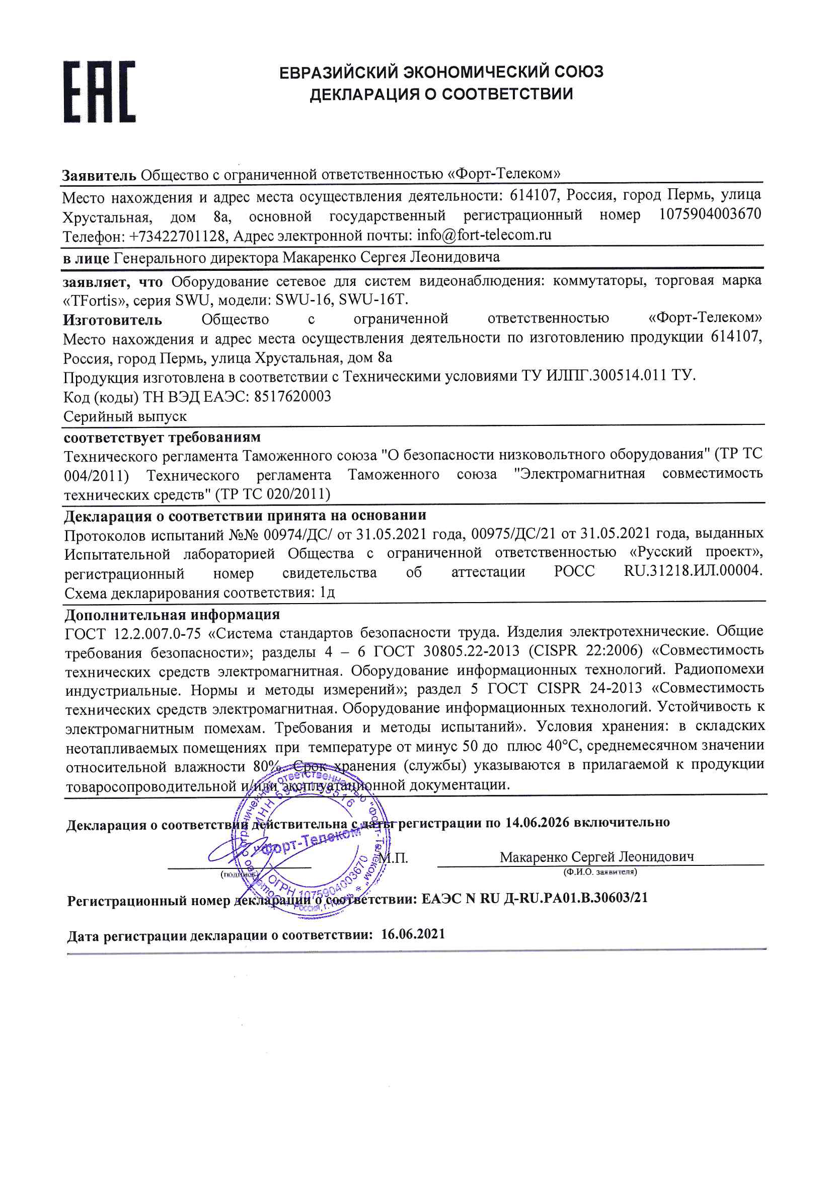 Коммутатор SWU-16T центральный TFortis в Перми