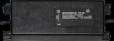 Прибор используется для питания радиоэлектронных устройств широкого применения напряжением 12 В постоянного тока от сети переменного тока напряжением 220 В, защищён от перегрузки и короткого замыкания на выходе, работоспособен на холостом ходу. Особенности моллюска заключаются в: удобном конструктиве; удобстве подключения; широкой сфере использования; широком сетевом диапазоне — от 170 В; повышенном классе защиты от поражения эл. током; электронной защите от КЗ и перегрузки. Изделие имеет компактные размеры и может устанавливаться под потолок, на стену, в шкаф с креплением на дин рейку и в различные устройства в качестве модуля питания. Для удобства монтажа прибор имеет разъёмные клеммные колодки.