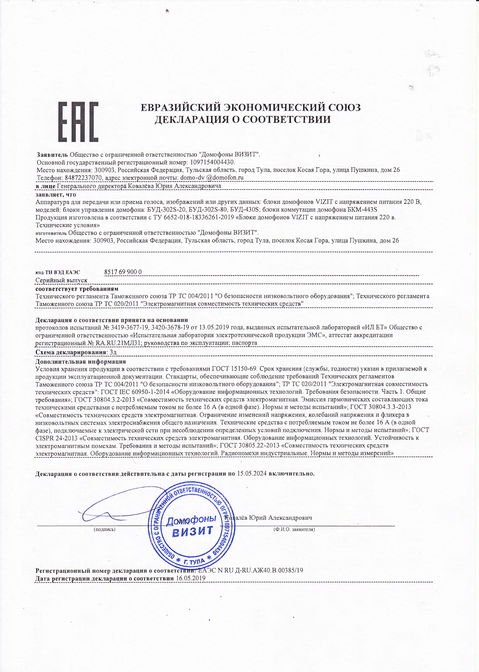Блок управления домофона БУД-302S-80 работает в комплекте с многоабонентскими блоками вызова (БВД) серии 300 как составная часть многоквартирных домофонов, видеодомофонов VIZIT;