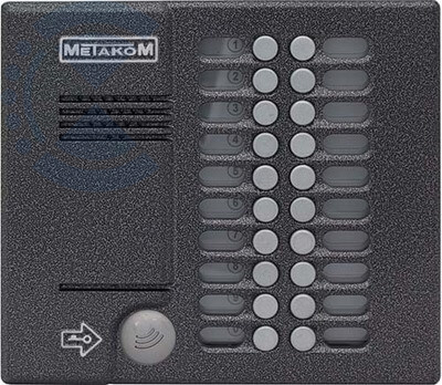 Блок вызова домофона МК20.2-MFE используется для установки в многоквартирных домах, офисах для организации селекторной связи с координатной системой адресации с числом абонентов до 20. Блок вызова имеет встроенный считыватель бесконтактных ключей Mifare с рабочей частотой 13,56 МГц. В качестве абонентских ключей используются бесконтактные брелки METAKOM поддерживающие Mifare технологию. Домофон обеспечивает подачу сигнала вызова на ТКП абонента, дуплексную связь посетителя с абонентом, дистанционное открывание замка по сигналу от ТКП. Особенности прибора: прямая адресация абонентов; встроенный коммутатор на 20 абонентов; встроенный считыватель MF ключей (работает только с ключами с кодированием идентификационного номера, которые кодируются на заводе-изготовителе) и т.д. Антивандальное исполнение блока вызова представляет собой специальную конструкция клавиатуры.