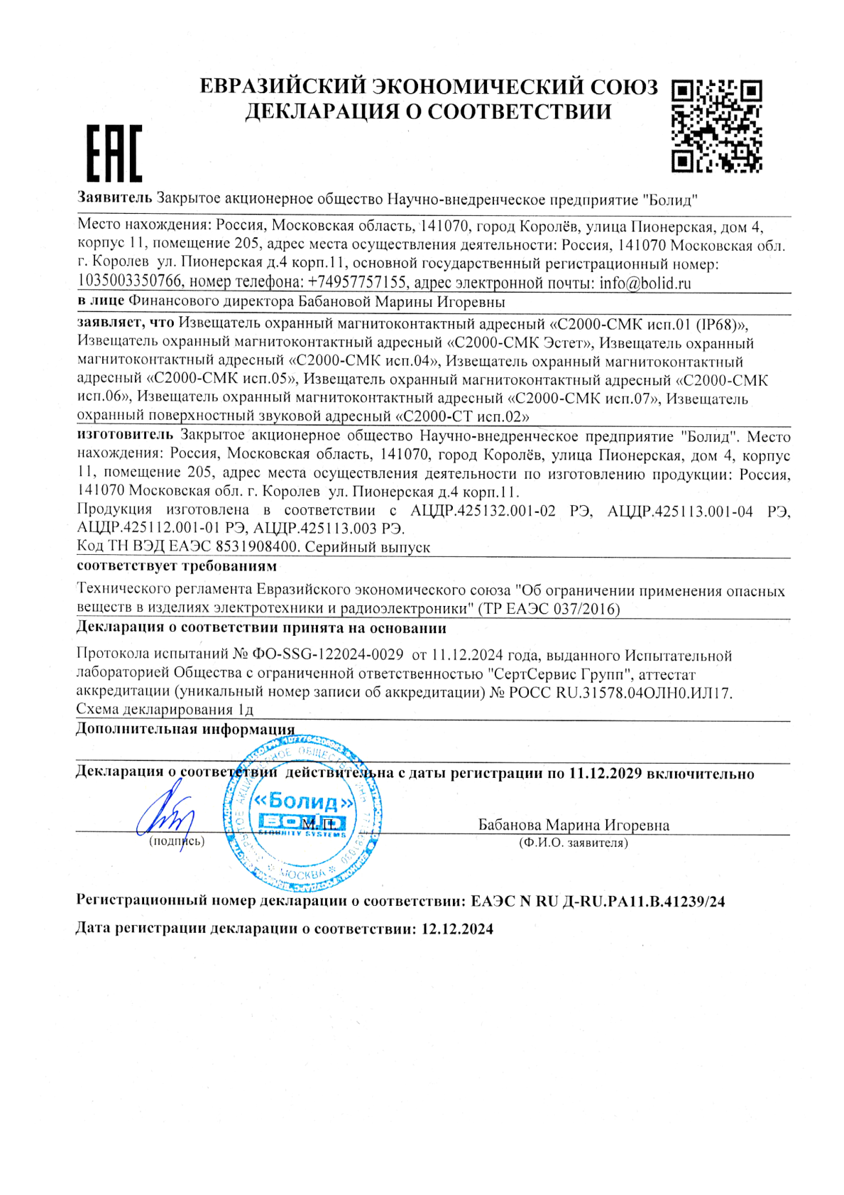 - Адрес извещателя хранится в энергонезависимой памяти