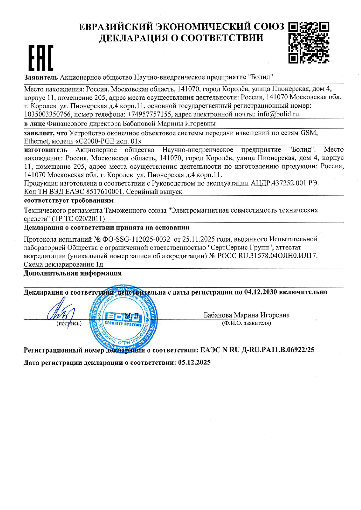 Устройство С2000-PGE исп.1 оконечное объектовое BOLID в Перми