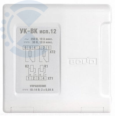 Релейный усилитель применяется для использования в системах контроля доступа и охранной сигнализации для коммутации исполнительных устройств, в системах пожарной сигнализации для передачи стартового импульса на приборы пожарные управления. Особенности прибора УК-ВК/12: варианты исполнений на два канала коммутации; напряжение управления 12 В или 24 В; возможность крепления на DIN-рейку. Корпус прибора сделан из пластика, не поддерживающего горение (категория V0 по стандарту огнестойкости UL94), электрическая прочность изоляции не менее 3 КВ.