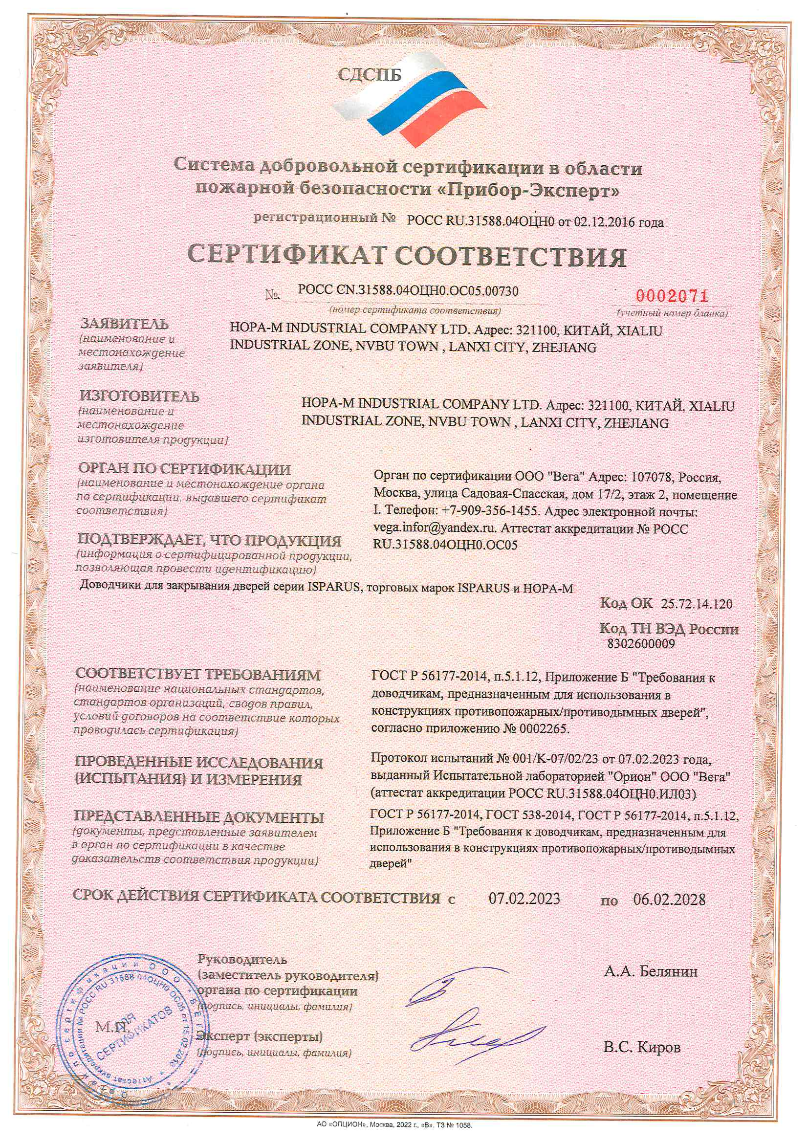 Доводчик 430 произведен с соблюдением всех требований государственных стандартов качества. Сертифицирован по ГОСТ Р на надежность работы - его ресурс составляет не менее 500 000 циклов.