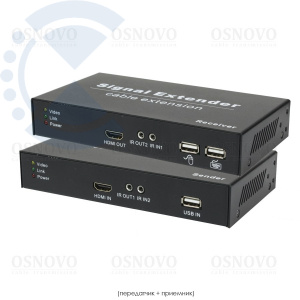 Комплект для передачи HDMI, USB и ИК управления по кабелю витой пары (CAT5e/6) до 150м. Разрешение до 4K2K(3840x2160,60Гц). Поддержка HDMI 2.0 и HDCP 2.2. Порты USB предназначены только для подключения клавиатуры и мыши.Передатчик:Вх.-HDMI(A)/Роз.2,1x5,5мм(DC12V)/TRS3.5мм(IR).Вых.-USB(A)/TRS3.5мм(IR)/RJ45.Приёмник:Вх.-RJ45/TRS3.5мм(IR)/Роз.2,1x5,5мм(DC12V)/USB(A)x2. Вых.-HDMI(A)/TRS3.5мм(IR).В комплекте БП DC12V(1А) - 2шт,соединительные шнуры для подключения к источнику сигнала-HDMI, USB, ИК-излучатель, ИК-приёмник. Размеры каждого устройства (ШxВxГ): 131x32x93мм. Вес: 0,6 кг. Рабочая температура: -15...+55С.