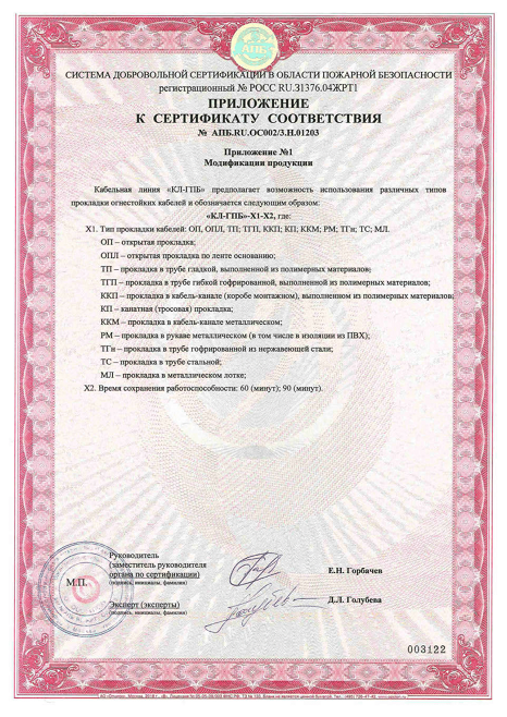 Сертификационными испытаниями подтверждено сохранение работоспособности до температуры 1020º С при напряжении 300 В (с учетом требований п.4.15 СП5 испытания проводились по ГОСТ Р 53316