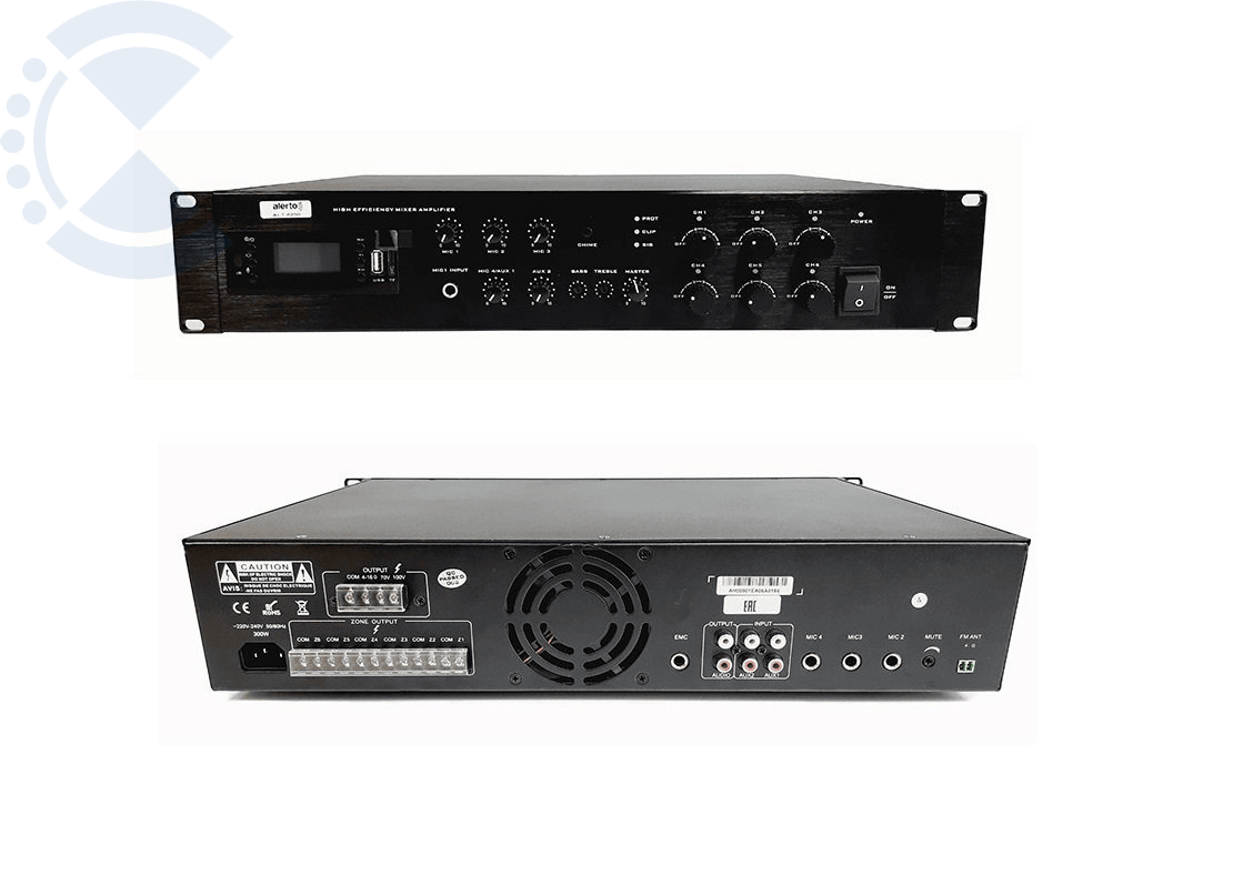 Трансляционный микшер-усилитель 250Вт, 100В, МР3 плеер (FM радио, USB, SD, Bluetooth), 6 зон трансляции; Независимая регулировка громкости в каждой зоне. 4 микрофонных, 2 линейных входа. ИК-пульт ДУ. ЕМ вход с наивысшим приоритетом. На передней панели расположена кнопка "Гонг" для подачи предупреждающего сигнала тревоги. ГОЧС. 220В 50 Гц .Возможность работы на нагрузку сопротивлением 4-16 Ом. 484x353x88 мм, 8 кг.