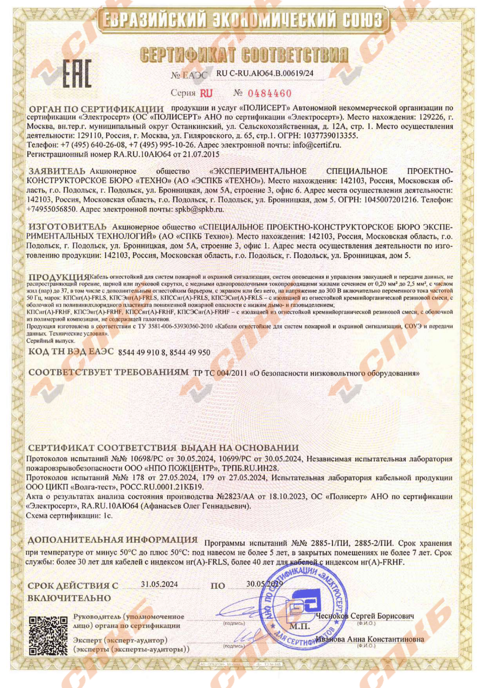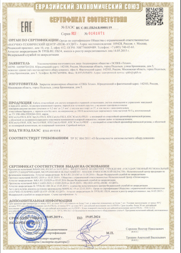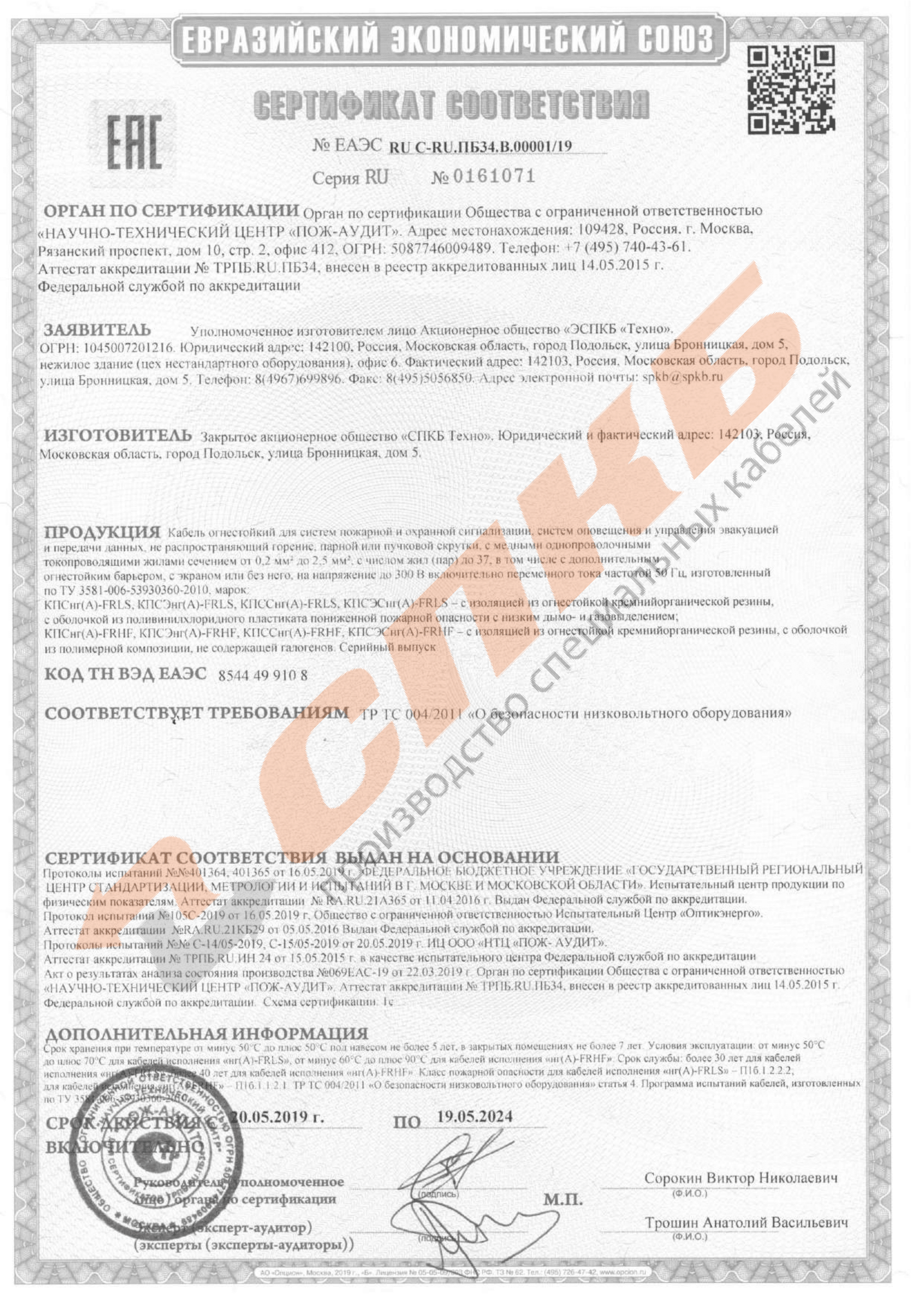 • Огнестойкий кабель предназначен для одиночной и групповой прокладки в системах противопожарной защиты, охранно-пожарной сигнализации (ОПС), оповещения и управления эвакуацией людей при пожаре (СОУЭ), аварийного оповещения на путях эвакуации, аварийной вентиляции и противодымной защиты, автоматического пожаротушения, а так же в зданиях, сооружениях и строениях, где предъявляются требования к кабелям и проводам по сохранению работоспособности в условиях пожара (ГОСТ 53315-2009)