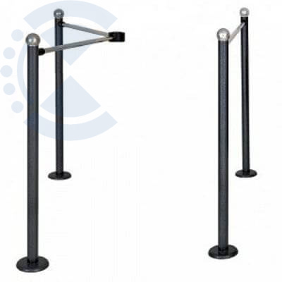 Комплект ограждения для роторного турникета с прямой планкой "Стандарт", состоит из четырех окрашенных стальных стоек с унифицированными крепежными узлами (муфтами) и трех горизонтальных хромированных перемычек диаметром 25мм. Внизу стоек расположены кожухи, под которыми находятся фланцы с тремя отверстиями диаметром 11мм для крепления ограждения к полу.