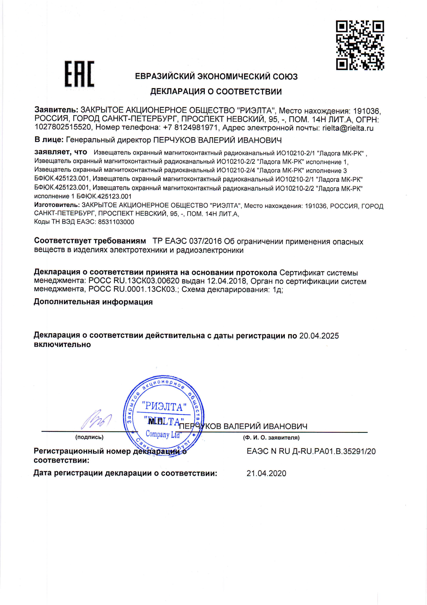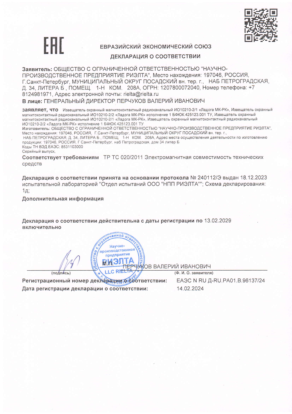 Предназначен для блокировки на открывание или смещение дверей, окон и других конструктивных элементов с передачей извещений по двунаправленному радиоканалу в соответствии с протоколом РиэлтаКонтакт-Р" прибору приемно-контрольному.