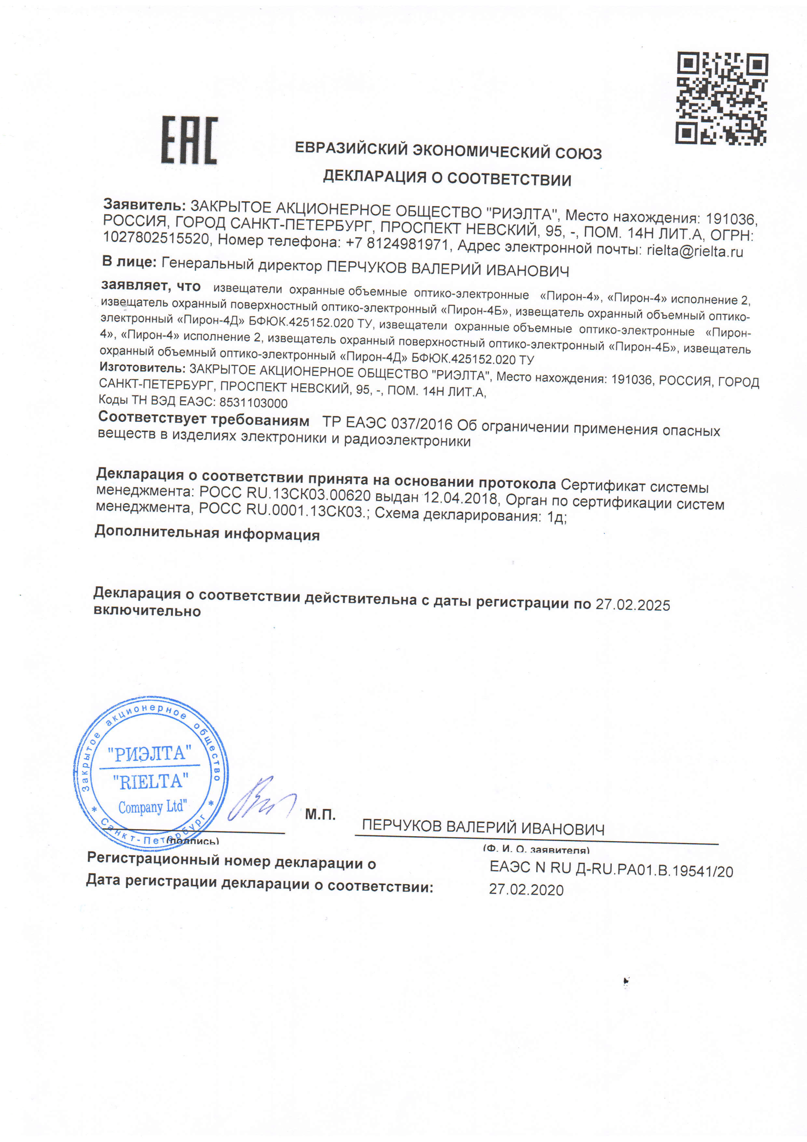 Извещатель охранный объемный оптико-электронный «Пирон-4Д» исполнение 1 - 1 шт.