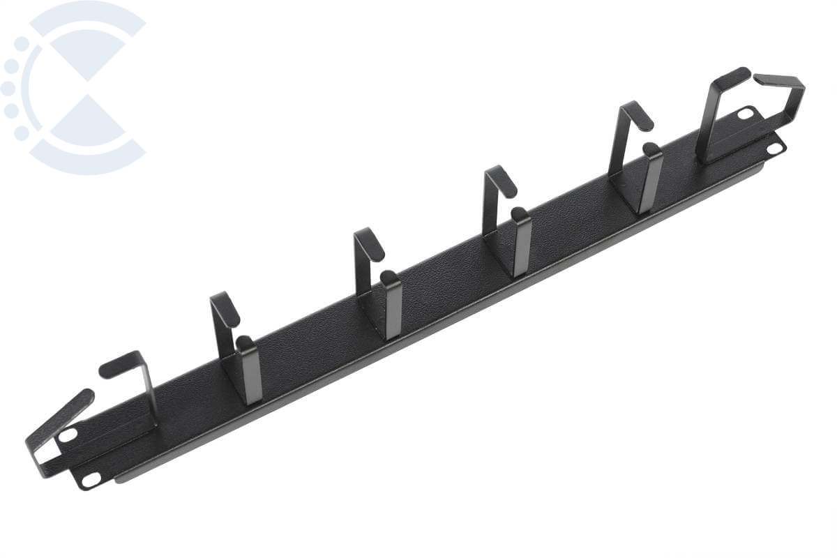 На лицевой стороне органайзера размещены 6 металлических колец для фиксации кабеля.