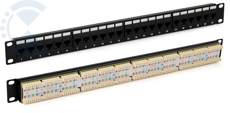 Hyperline PP3-19-48-8P8C-C5E-110D Патч-панель 19", 2U, 48 портов RJ-45, категория 5e, Dual IDC, ROHS, цвет черный