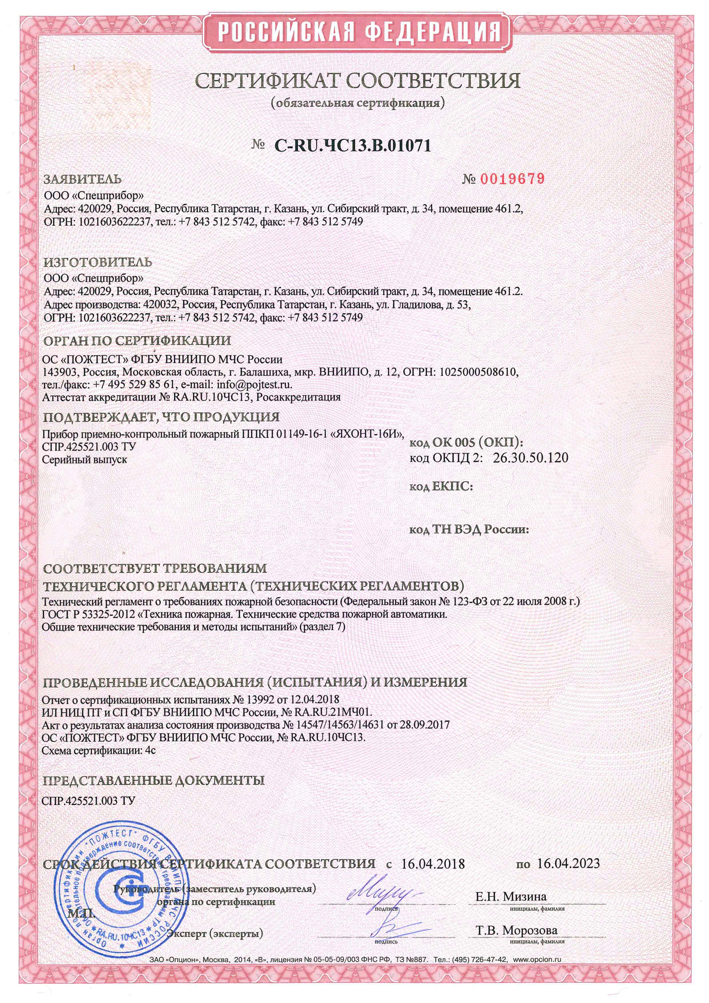 Прибор приемно-контрольный пожарный ППКП01149-16-1 - Яхонт-16И