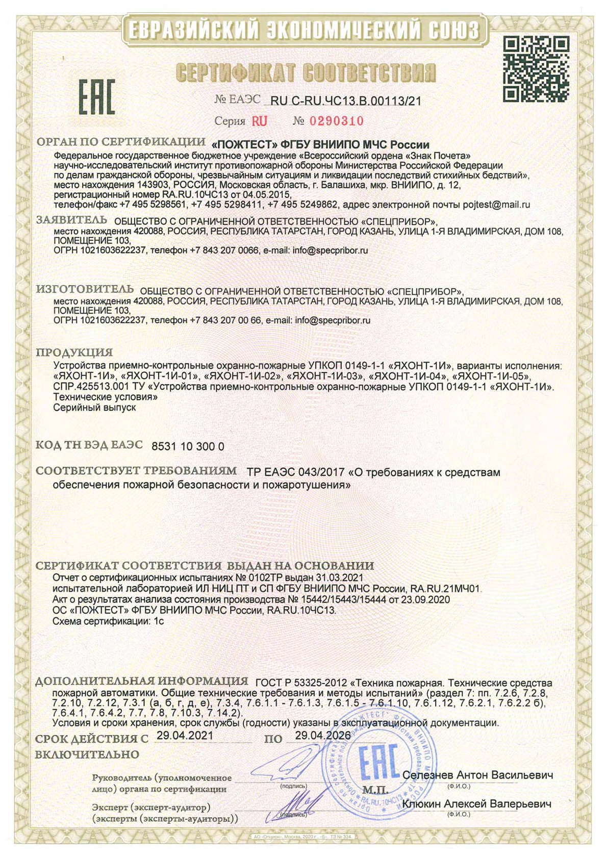 Прибор ППКОП 0149-1-1 - Яхонт-1И