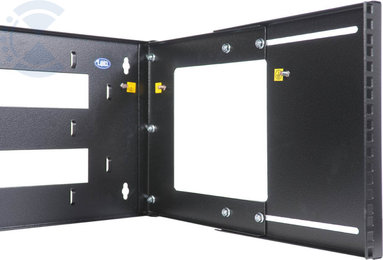 Предусмотрено надежное крепление кронштейна к стене, через отверстия в задней стенке. Для удобной фиксации коммутационного кабеля в комплект поставки входят самоклеящиеся площадки для крепления стяжек и комплект кабельных стяжек. Предусмотрена система заземления.