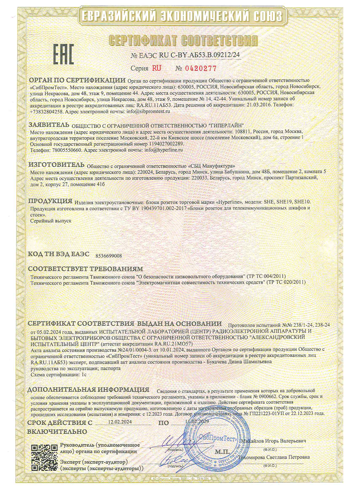 Блок розеток SHE19-8SH-S-2.5EU для 19" шкафов, горизонтальный, с выключателем с подсветкой Hyperline в Перми