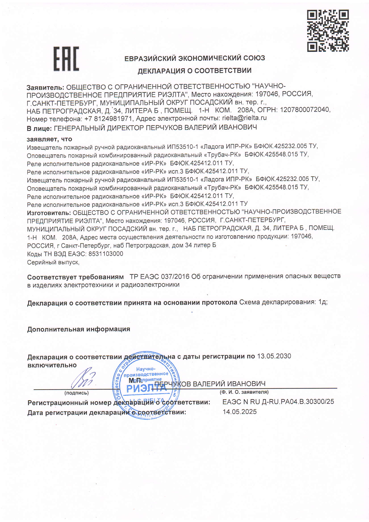 Извещатель пожарный ручной радиоканальный, диапазон температур от -20 до +55°С, электропитание от