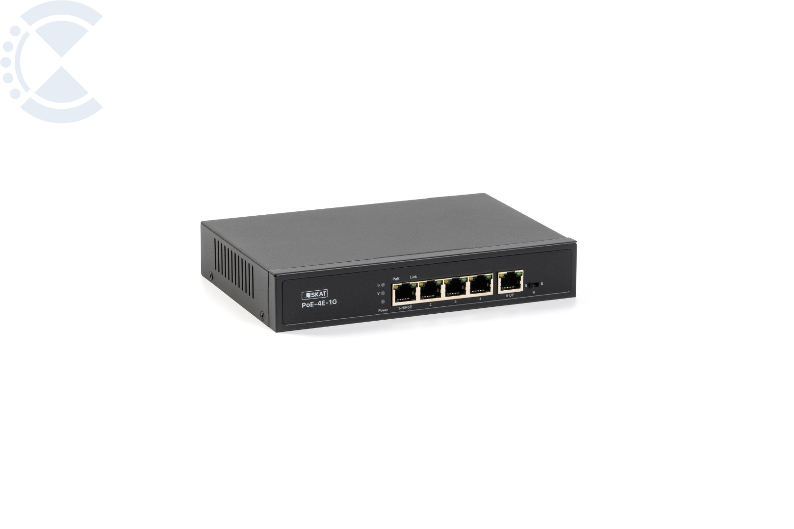SKAT PoE-4E-1G представляет собой специализированный неуправляемый PoE коммутатор для использования в системах видеонаблюдения и безопасности. Характеризуется высокой надежностью работы благодаря защите от электростатических разрядов и перепадов напряжения, позволяет организовать качественную передачу информации в сети Ethernet.