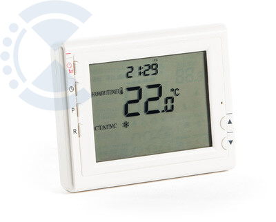 Проводной программируемый комнатный термостат. Питание от двух батарей типа АА, 2 шт. Контакты реле — до 250 В, 8 А. Температура регулировки — от 5 °С до 35 °С. Точность регулировки — 0,5 °С. Большой LCD дисплей. Индикация температуры в помещении. Индикация состояния котла. Индикация разряда батарей. Индикация неисправности системы. Часы реального времени. Калибровка температуры. Установка индивидуальной программы для каждого из 7 дней недели. Установка ограничения максимальной и минимальной температуры. Установка значения гистерезиса. Функция защиты насоса. Функция защиты системы от замерзания. Функция отпуск. Функция фиксации температуры. Работа с нормально открытой или нормально закрытой логикой.