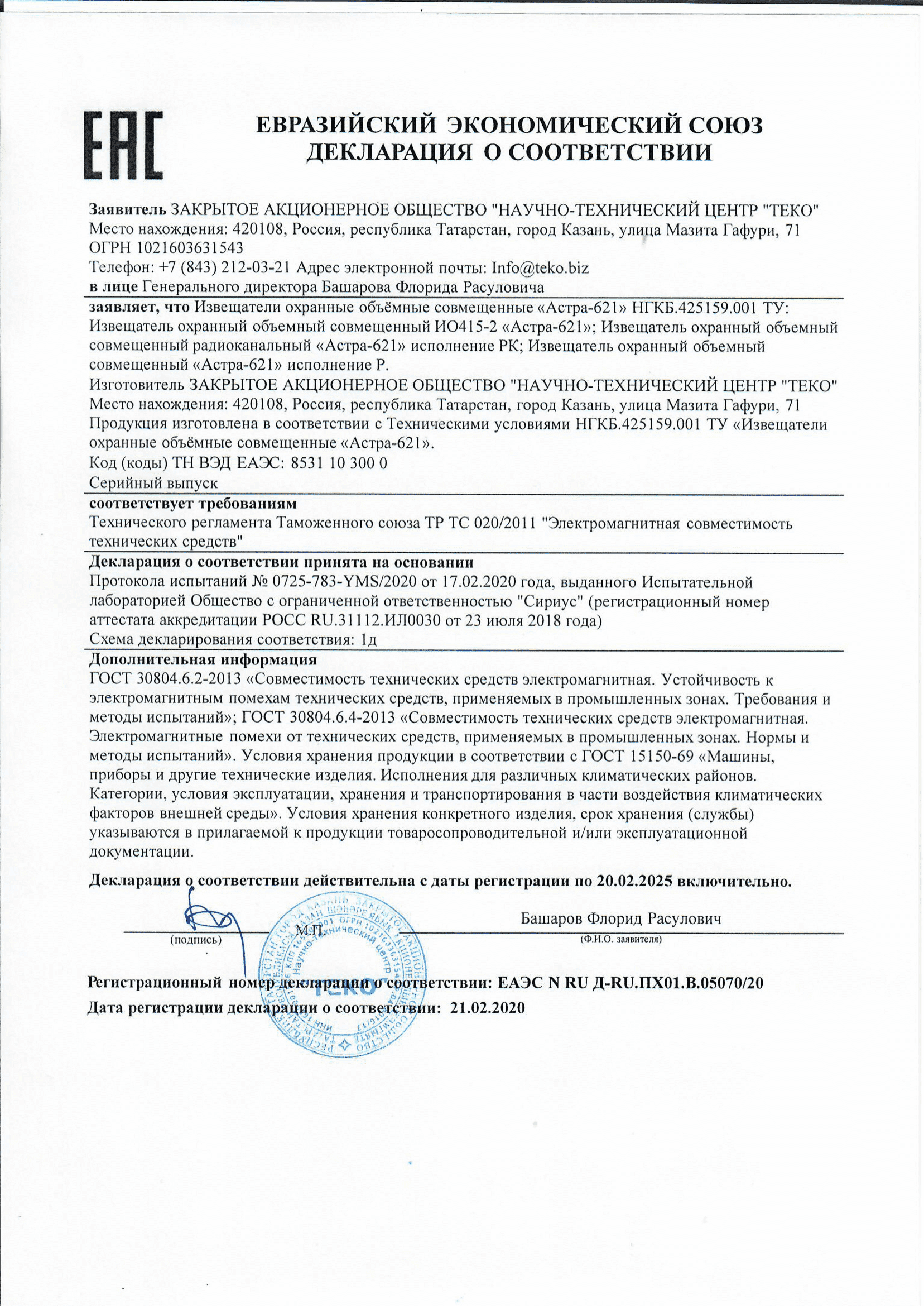 - возможность установки с применением дополнительного шарикового кронштейна Астра-5/621.