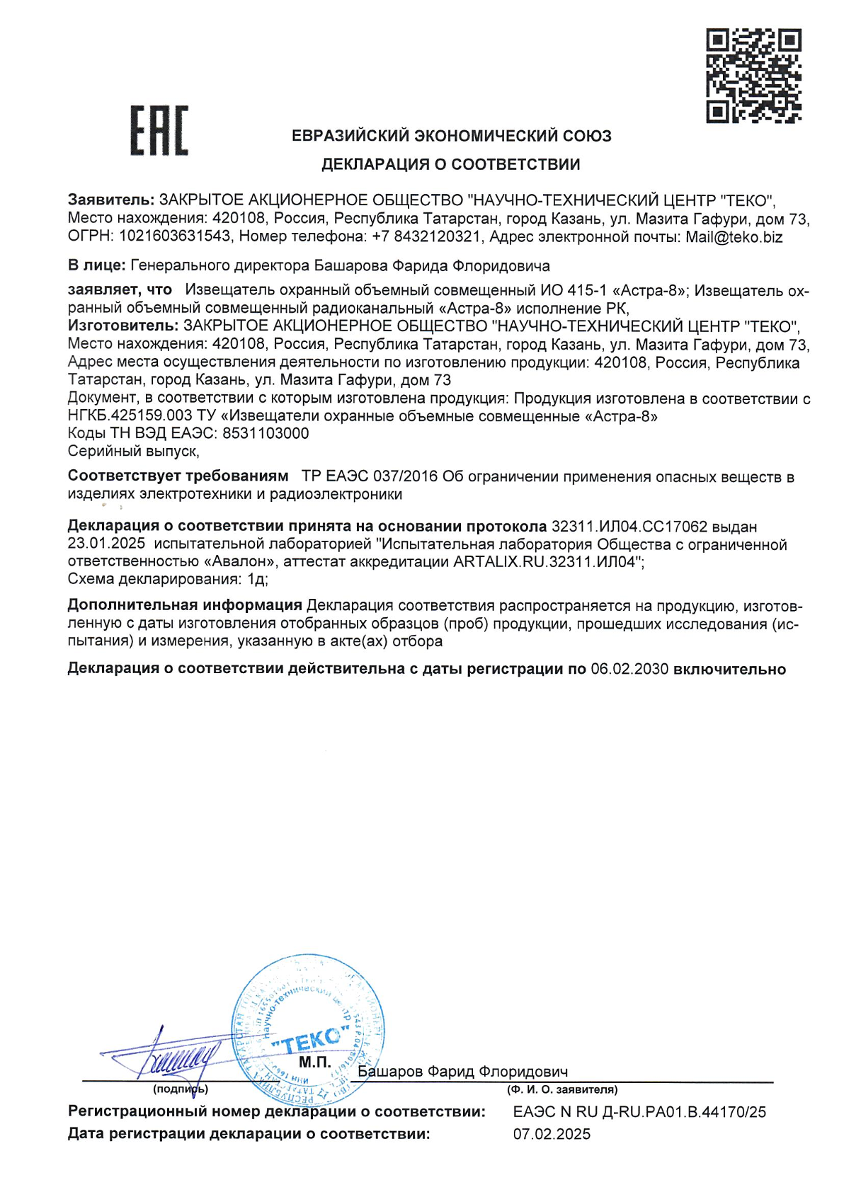 Содержит в себе ИК-датчик движения и датчик разбития стекла. Два канала извещателя работают независимо друг от друга и имеют отдельные релейные выходы.