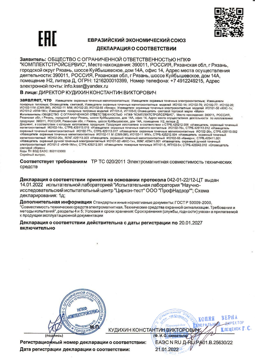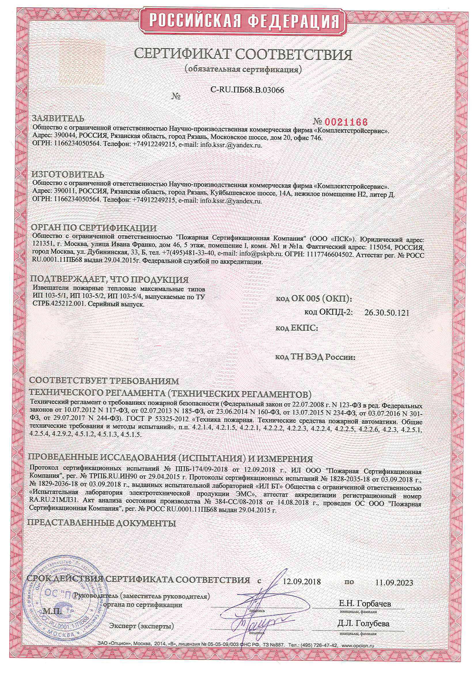 Извещатель ИП-103-5/1-А3 (64-76°С, нормально замкнутый) пожарный тепловой Комплектстройсервис в Перми