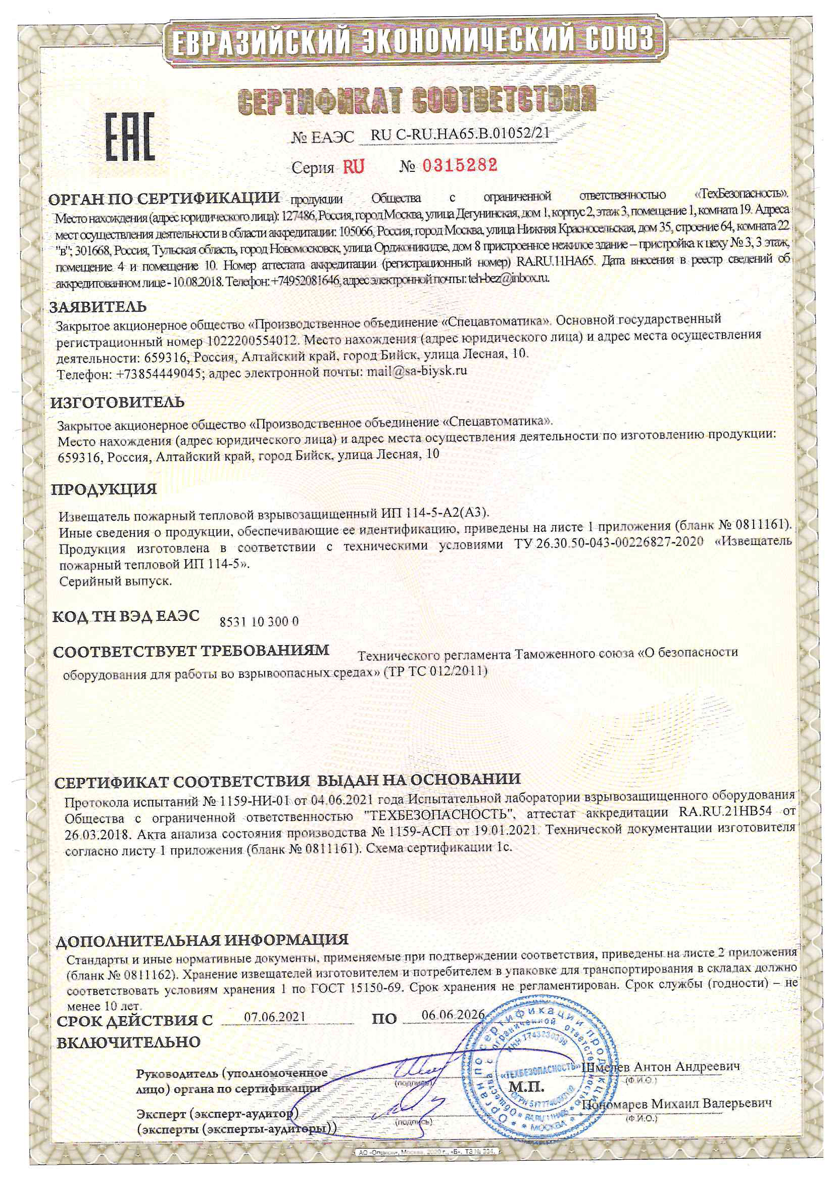 ИП 114-5-А2 предназначен для контроля температуры газовоздушной среды помещений зданий и сооружений и выдачи извещения о пожаре в случае превышения температуры срабатывания извещателя. Извещатель также допускается применять в искробезопасных цепях (шлейфах) приемно-контрольных приборов, имеющих соответствующую маркировку по взрывозащите.