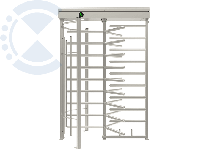 Автоматический моторизованный полноростовый турникет с корпусом, ротором и преградами из оцинкованной окрашенной стали. Три сектора по 120 градусов. Встроенный блок управления. Освещение зоны прохода. Встроенный блок питания.