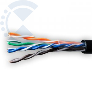 Кабель симметричный неэкранированный UTP; 4х2хAWG24 (0,50 мм); CCA (Copper Clad Aluminium – алюминий, плакированный медью); оболочка из полиэтилена; для внешней прокладки; 305 метров