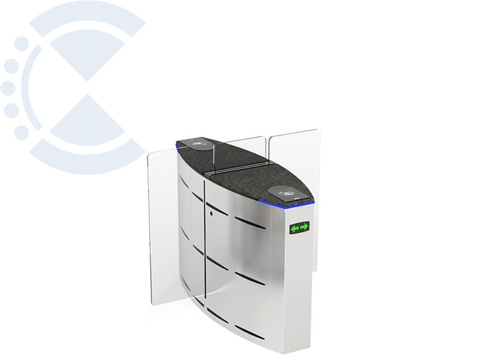 Комбинированный центральный модуль раздвижного турникета, оснащенный платой управления и светодиодными указателями прохода и направления. Корпус - нержавеющая сталь. Сервопозиционный электропривод створки с определением препятствий и автоматической разблокировкой при отключении электроэнергии. Створка из 10 мм закаленного стекла. Ширина прохода 550 и 900 мм. Высота створки 1200 мм. Время открытия - 1.6 сек