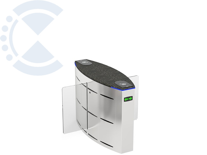 Центральный модуль раздвижного турникета SLIDING GATE SG90S, оснащенный платой управления и светодиодными указателями прохода и направления. Корпус - нержавеющая сталь. Сервопозиционный электропривод створки с определением препятствий и автоматической разблокировкой при отключении электроэнергии. Створка из 10 мм закаленного стекла. Ширина прохода 2 х 900 мм. Высота створки 900 мм. Время открытия - 1.3 сек.