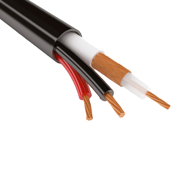 Комбинированный кабель для систем видеонаблюдения. КВК-2П 2х0,75 OUTDOOR, моножила, бухта 200м, черный (центр жила - медь, оплетка медная)