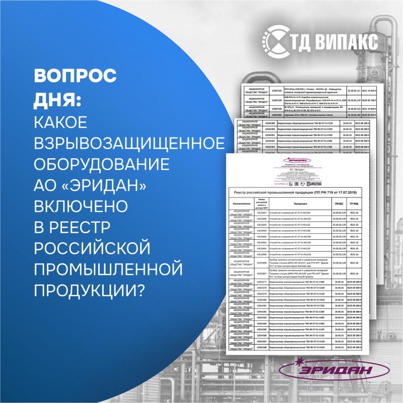 Какое взрывозащищенное оборудование АО «Эридан» включено в реестр российской промышленной продукции?