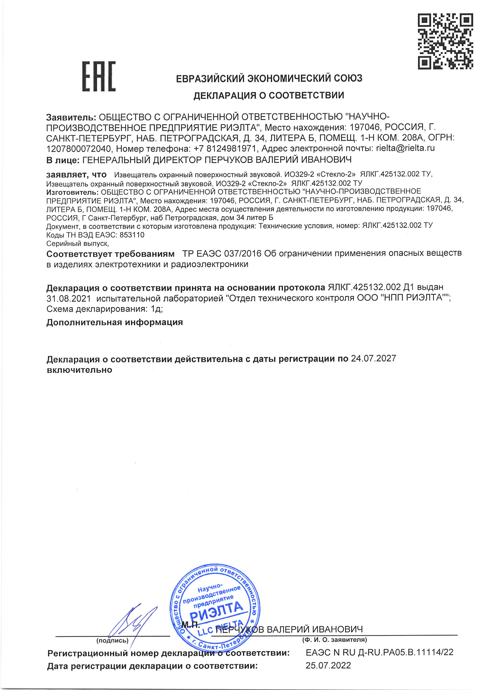 Поверхностный звуковой с питанием по ШС, микропроц., дальность обнаруж. 6 м, min контр.площадь 0,1 м², рег.чувств., тампер, Uшс.15…30В, Iпотр.до 1мА, IP30, tраб.-20...+45°С. 80х80х31 мм