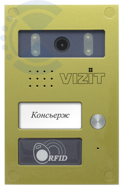 БВД-424FCB-1. Блок вызова на 1 абонента. Используется совместно с блоками управления БУД-485 и БУД-430(M, S). Возможность увеличения количества абонентов до 25 при подключении кнопочных панелей BS-424-2,BS-424-4,BS-424-8. Встроенная телекамера цветного изображения с функцией "День-ночь" (700 tvl, PAL, 0 Lux / подсветка для телекамеры белого свечения, объектив “Board”120°). Встроенный считыватель ключей VIZIT-RF3 (RFID-13.56МГц). Обеспечивает дополнительную защиту от несанкционированного администрирования домофона. Возможность использования бесконтактного модуля памяти VIZIT-RFM4. Рекомендуется использовать совместно с монтажным комплектом МК-424.
