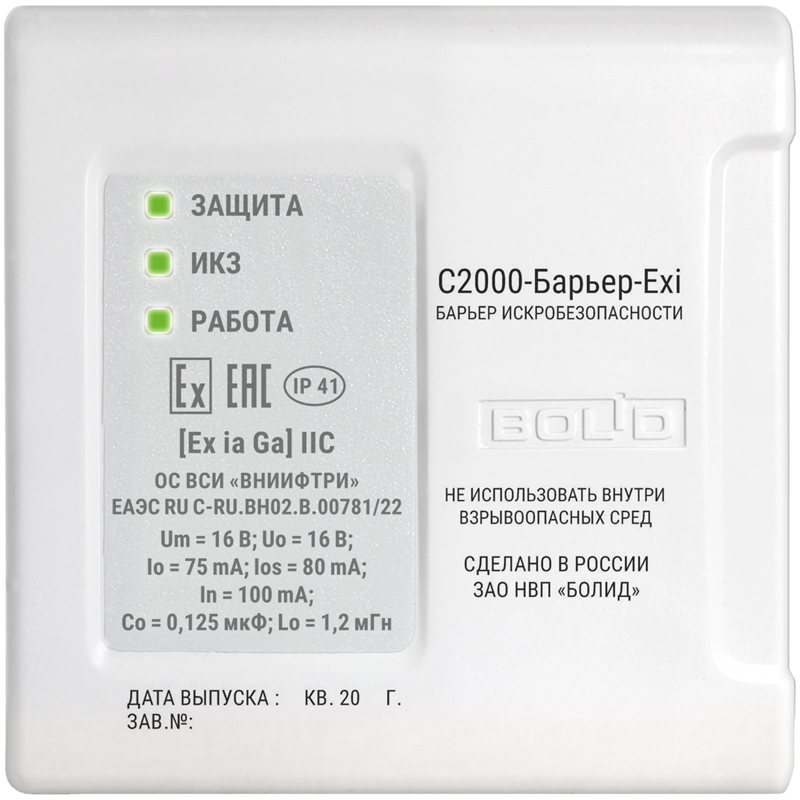 С2000-Барьер-Exi оснащён ИКЗ на входе, во взрывобезопасной зоне и на выходе – в искробезопасной цепи.
