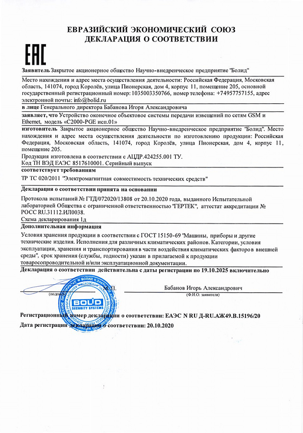 Устройство С2000-PGE исп.1 оконечное объектовое BOLID в Перми