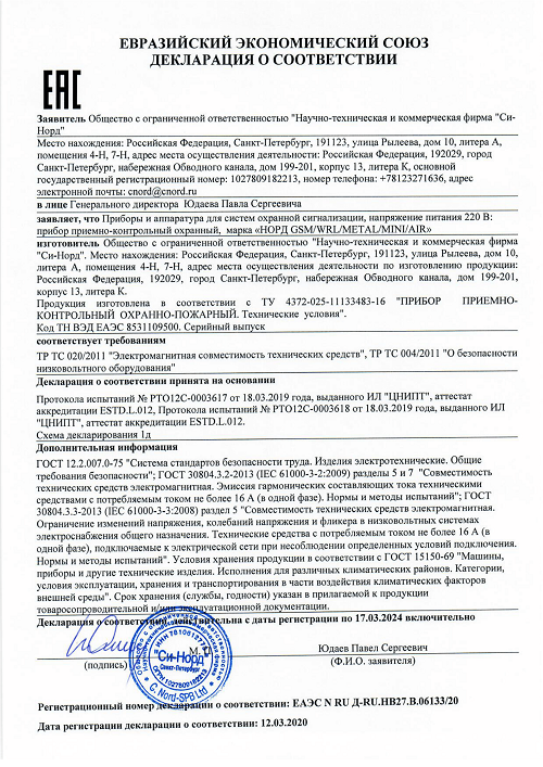 — Предназначен для управления контрольной панелью Норд GSM WRL.