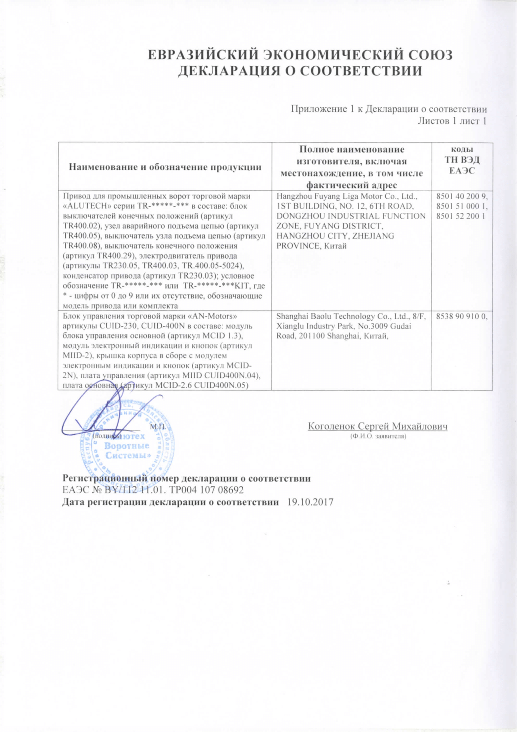 Электропривод с системой мехнической разблокировки и цепью ручного управления и набором кабелей;