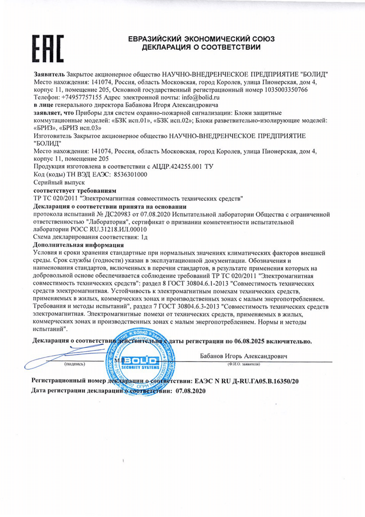 Блок разветвительно-изолирующий "БРИЗ" исп.03 применяется для использования в двухпроводной линии связи контроллера "С2000-КДЛ" и "С2000-КДЛ-2И" с целью изолирования короткозамкнутых участков с последующим автоматическим восстановлением после снятия короткого замыкания.