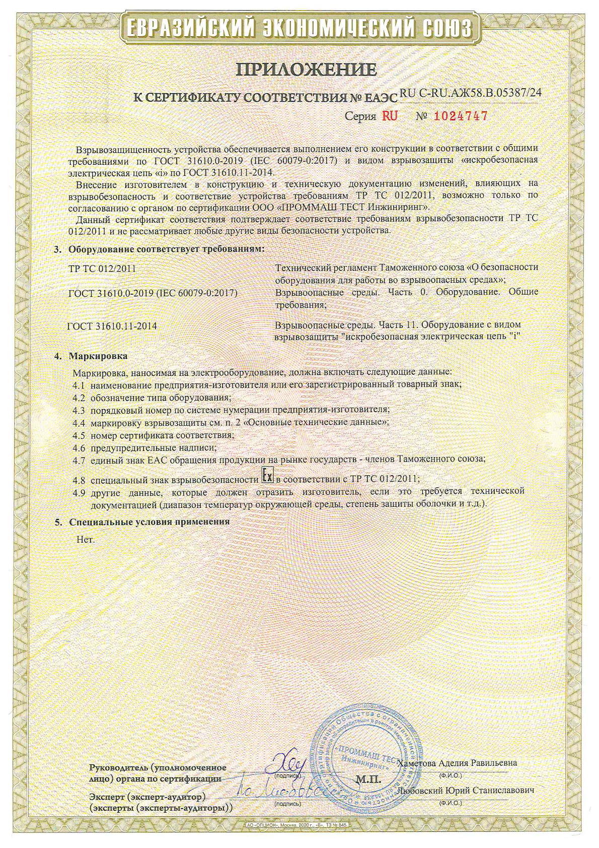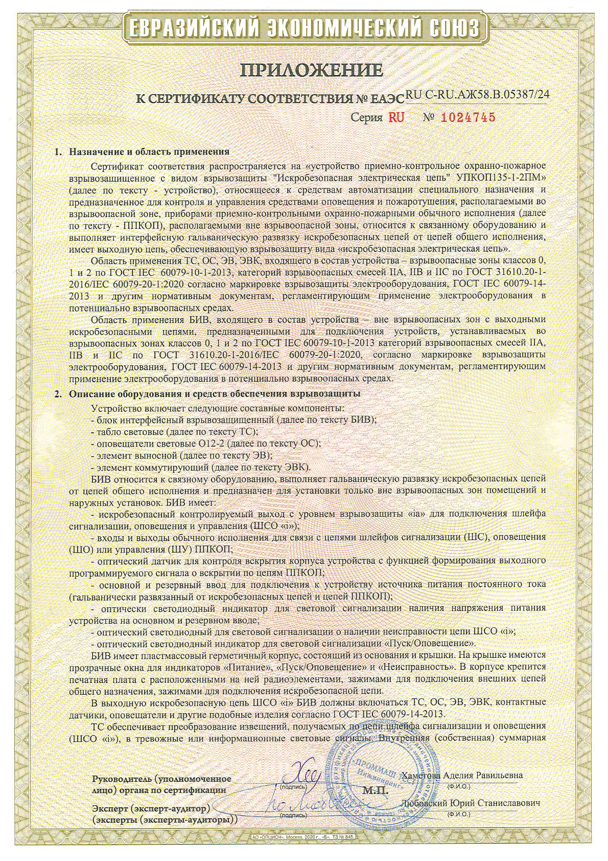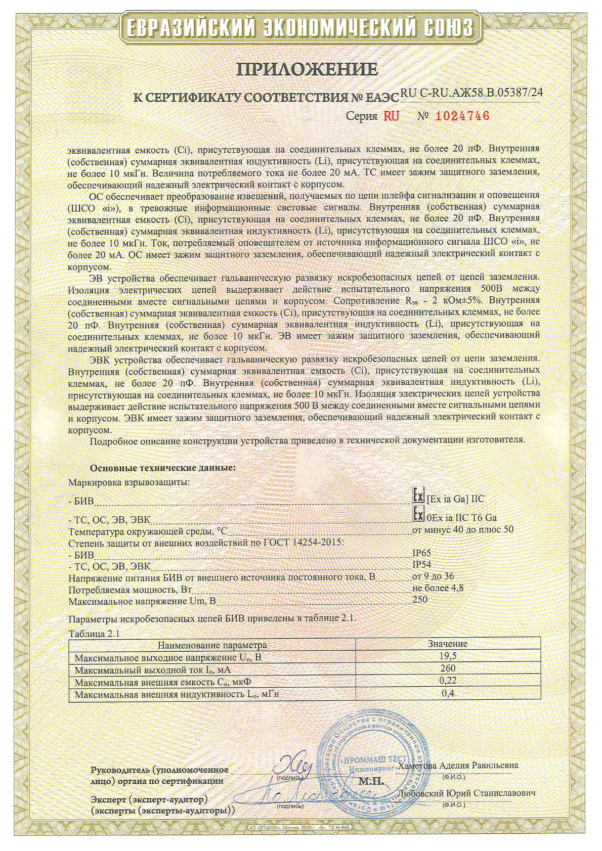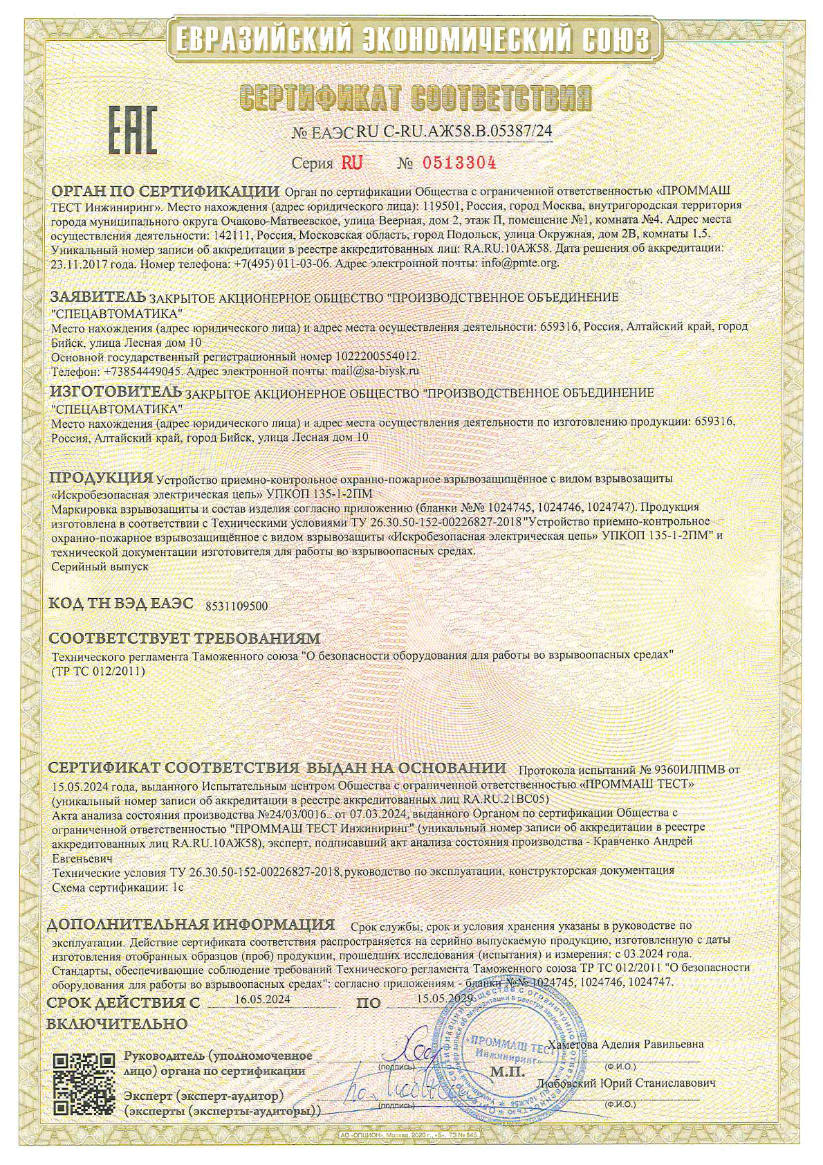 БИВ с маркировкой взрывозащиты (Ехiа)IIС В КОМПЛЕКТЕ УПКОП 135-1-2П