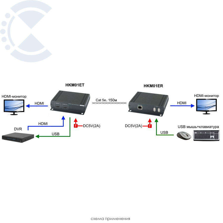 HDMI KVM удлинитель (комплект приёмник + передатчик) по сети Ethernet, расстояние "точка-точка" до 150м (CAT5e/CAT6). Позволяет передавать HDMI (1.3b, 1080p, 60Гц), и USB 2.0 (2 порта). Можно использовать совместно с SR01 для увеличения расстояния (без ограничения по количеству). Устройство предназначено для работы с PC и регистраторами на базе ОС Windows/Linux с драйверами для работы USB-хаба. Передатчик: Вх. - HDMI(A)/Роз.2,5х5,5мм(DC5V). Вых. - HDMI(A)/USB(B)/RJ45. Приёмник: Вх. - USB(A)x2/Роз.2,5х5,5мм(DC5V)/RJ45. Вых. - HDMI(A). В комплекте БП DC5V(2А) - 2шт. Размеры каждого устройства (ШxВxГ): 140x30x125мм. Рабочая температура -40…+55°С.