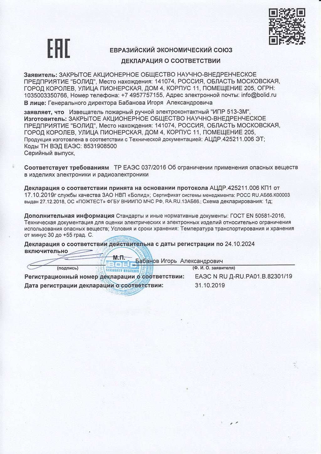 Предназначен для передачи сообщения о пожаре при нажатии на клавишу. Извещатель пришёл на смену приборам ИПР 513-3, ИПР 513-3 исп.01. Получение сообщения приемно-контрольным прибором подтверждается свечением индикатора.