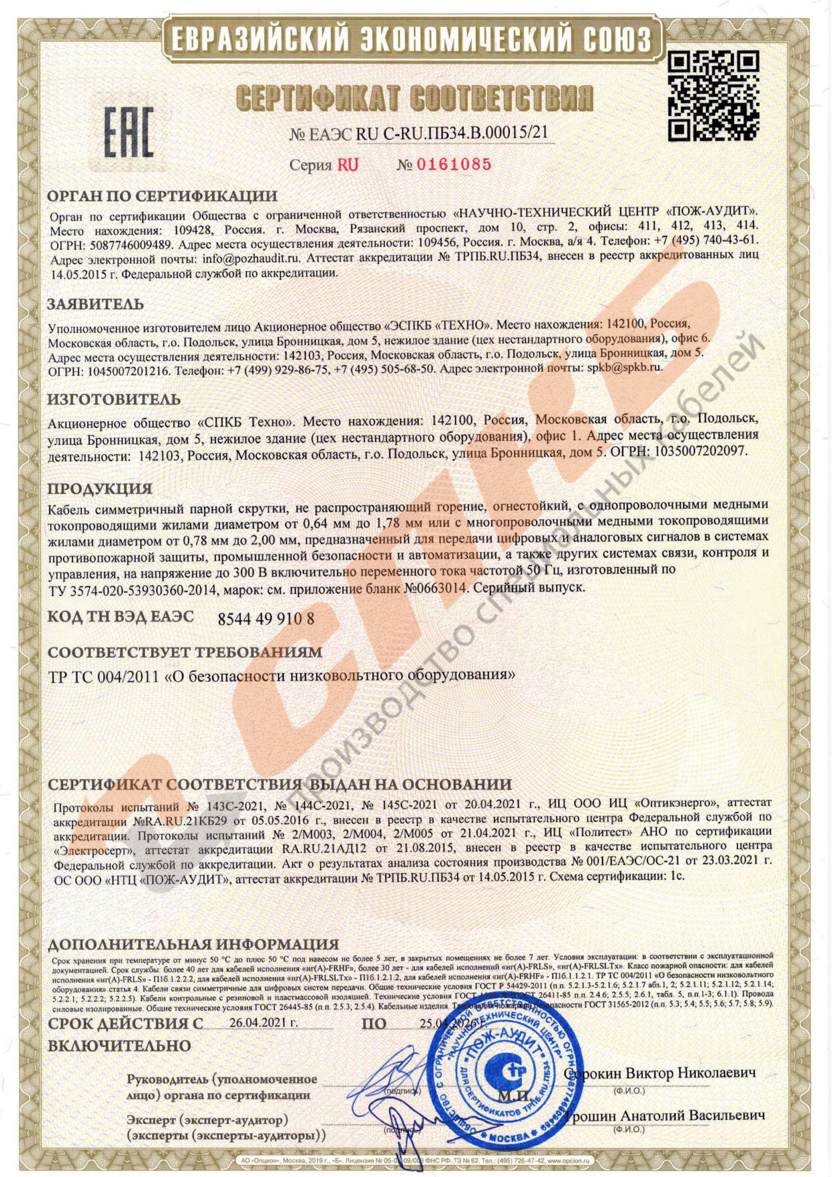 Электрические параметры кабеля: