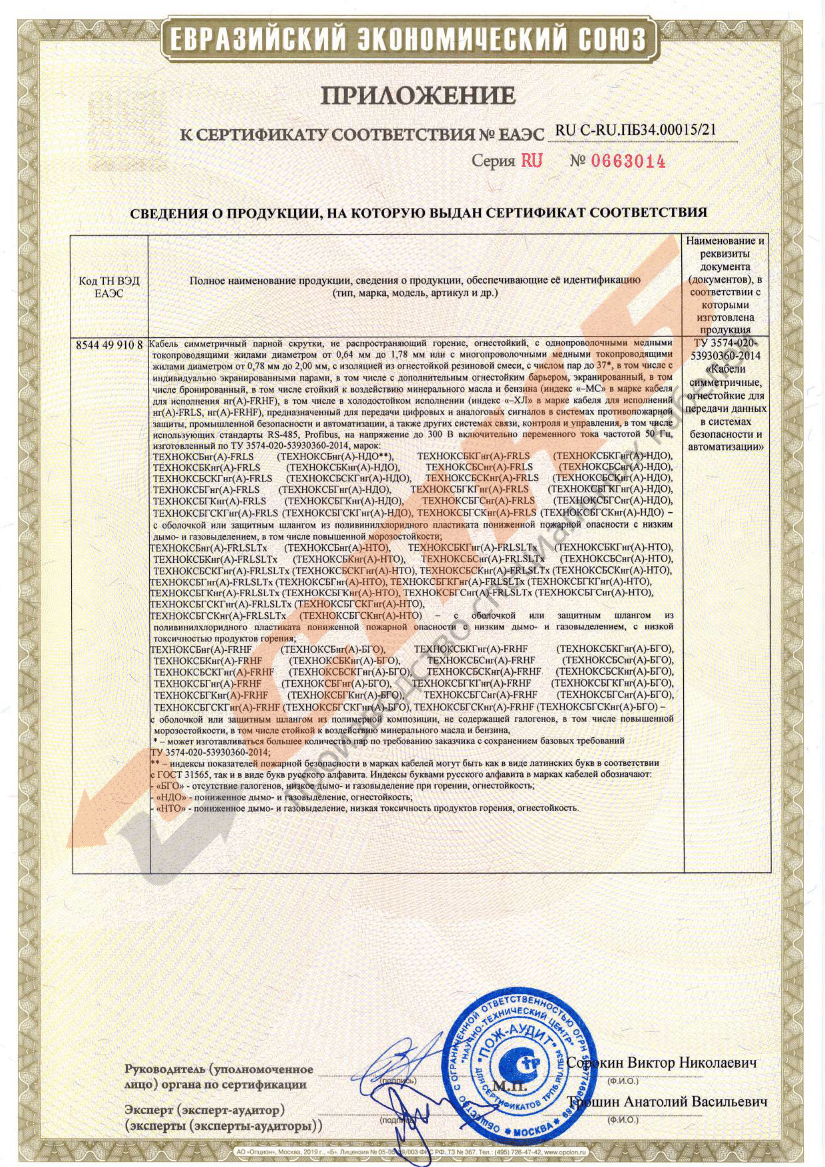 - сопротивление изоляции жил при 20°C, не менее, МОм/км. 300