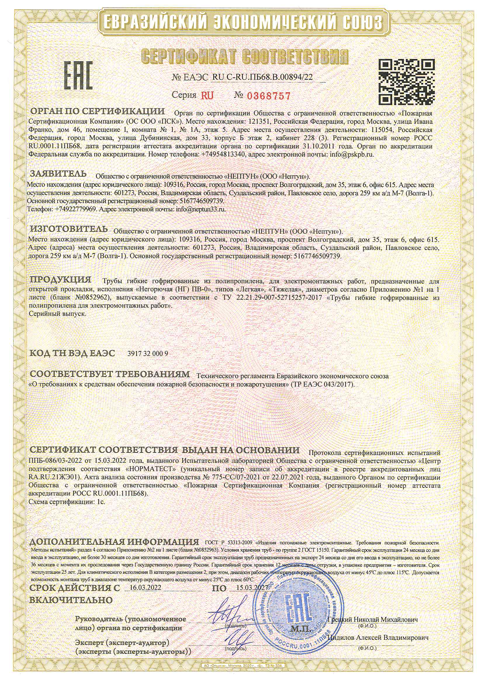 Труба ПП 16 мм гофрированная с зондом, легкая, не распр. горение,350Н, синяя, (бухта 100м) (PR02.0075) Промрукав в Перми