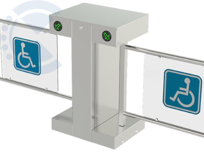 Турникет-калитка МГН моторизованная SALOON 705 двухпроходная. Корпус и преграды - нержавеющая сталь AISI 304. Оснащена платой управления и светодиодными указателями прохода. Корпус - нержавеющая сталь AISI 304. Сервопозиционный электропривод створки с определением препятствий и автоматической разблокировкой при отключении электроэнергии. Створки 900 мм с информационной вставкой. Время открытия 2.2 сек. Встроенный блок питания.