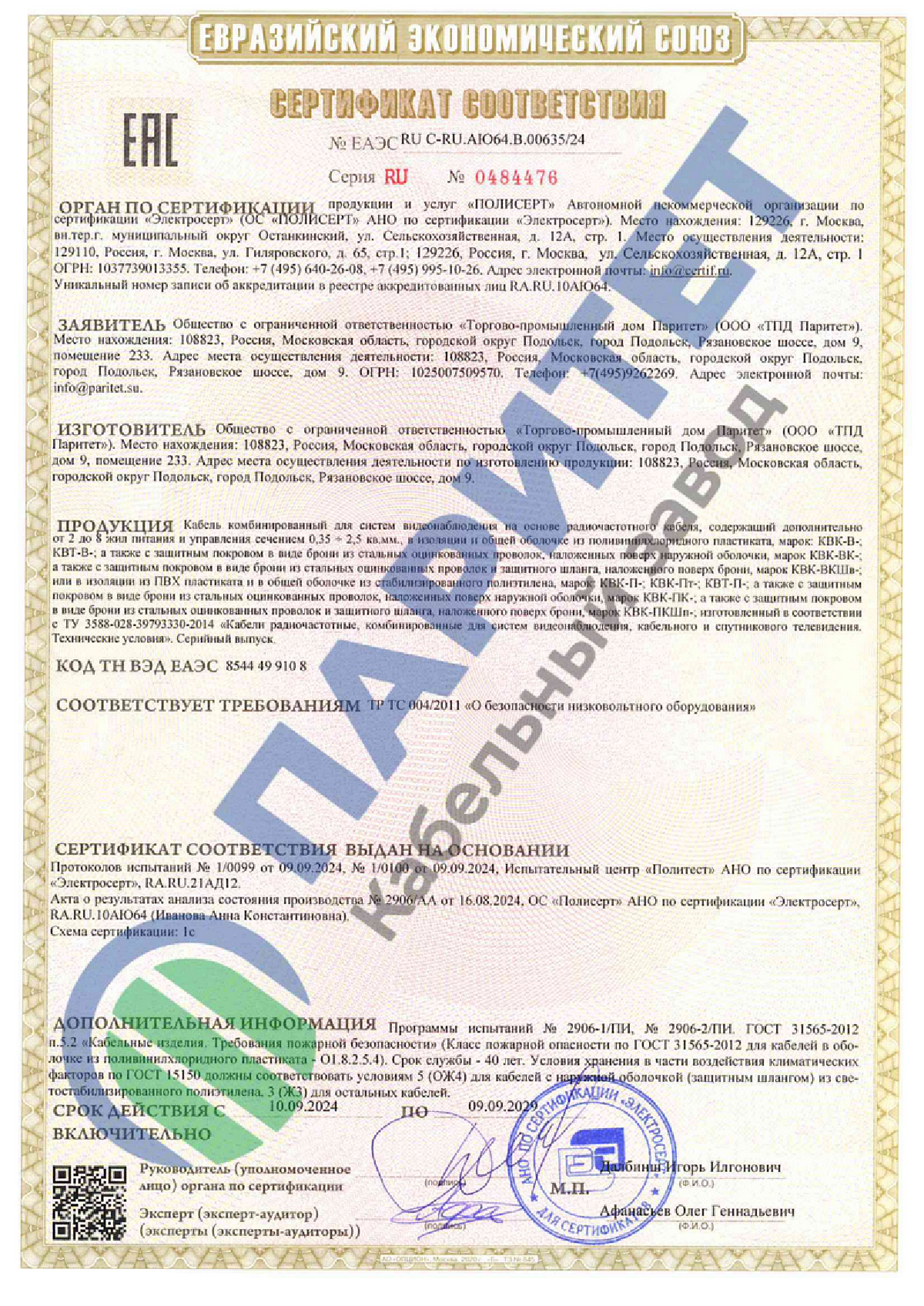 Комбинированный кабель КВК-П-3ф 2х0,50 используется для систем аналогового видеонаблюдения имеет однопроволочный радиочастотный элемент РК 75-3-32, экран (оплётка медными проволоками плотностью не менее 90%) и две жилы питания сечением 0,5 мм.кв. Кабель предназначен для внешней и наружной стационарной прокладки. Кроме того, КВК-П-3 ф 2х0,5 применяется для систем аналогового видеонаблюдения с одновременным подключением питания и передачи видеосигнала